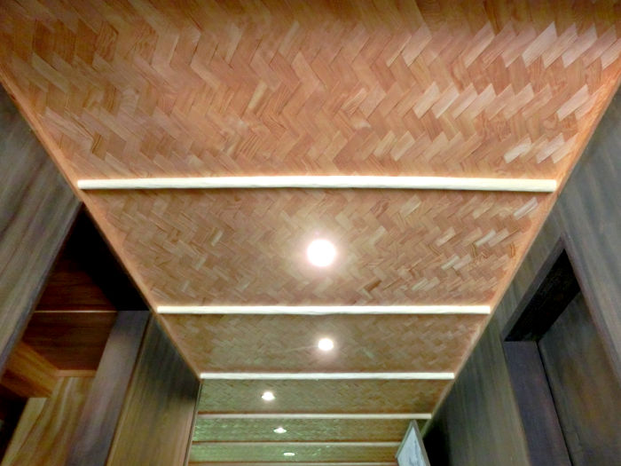 住宅の玄関ホールの天井に矢羽根網代を採用していただきました。